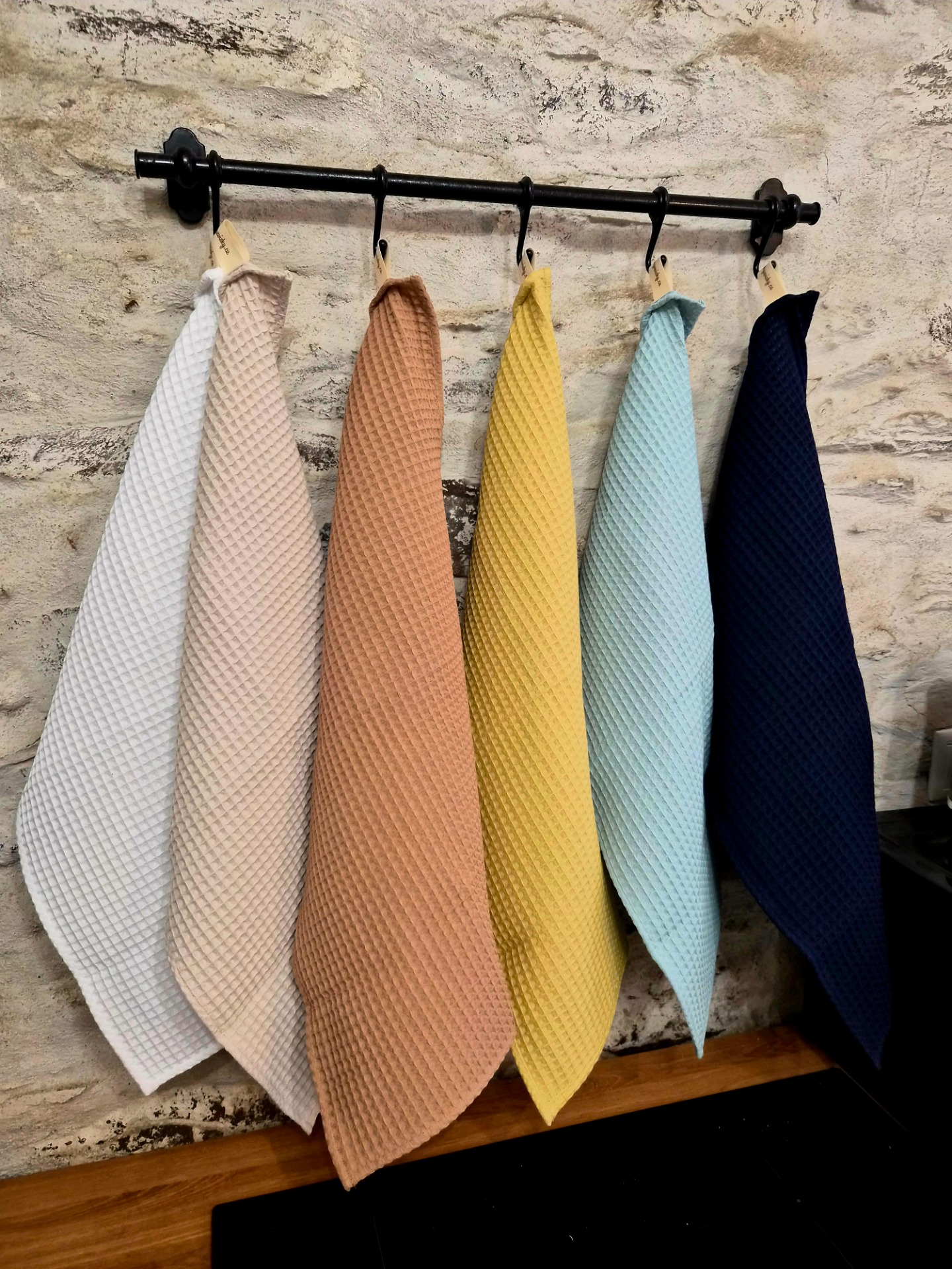 Kuchyňské utěrky z kvalitní bavlněné waflové látky, která je lehká, savá a rychle schne.